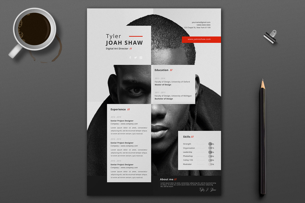 Modern Resume / CV template with a professional look. Very easy to use and edit. It will help you to get your dream job. Fully customizable in Adobe Photoshop and Microsoft Word. Unlimited edits! Hope you enjoy it as much as I did design it!