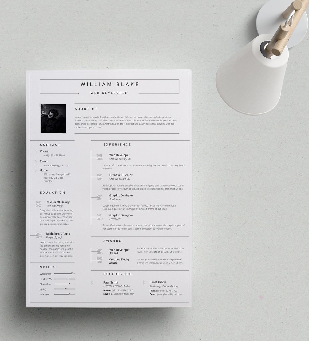 Modern Resume / CV template with a professional look. Very easy to use and edit. It will help you to get your dream job. Fully customizable in Adobe InDesign. Unlimited edits! Hope you enjoy it as much as I did design it!