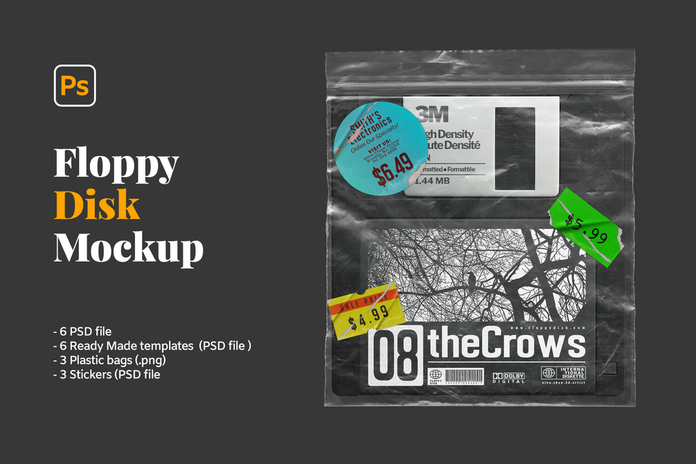 This is a hi-resolution and hi-detailed render of a Floppy Disk. Made to use as a product mockup in photoshop. You can use this mockup to showcase your own products.