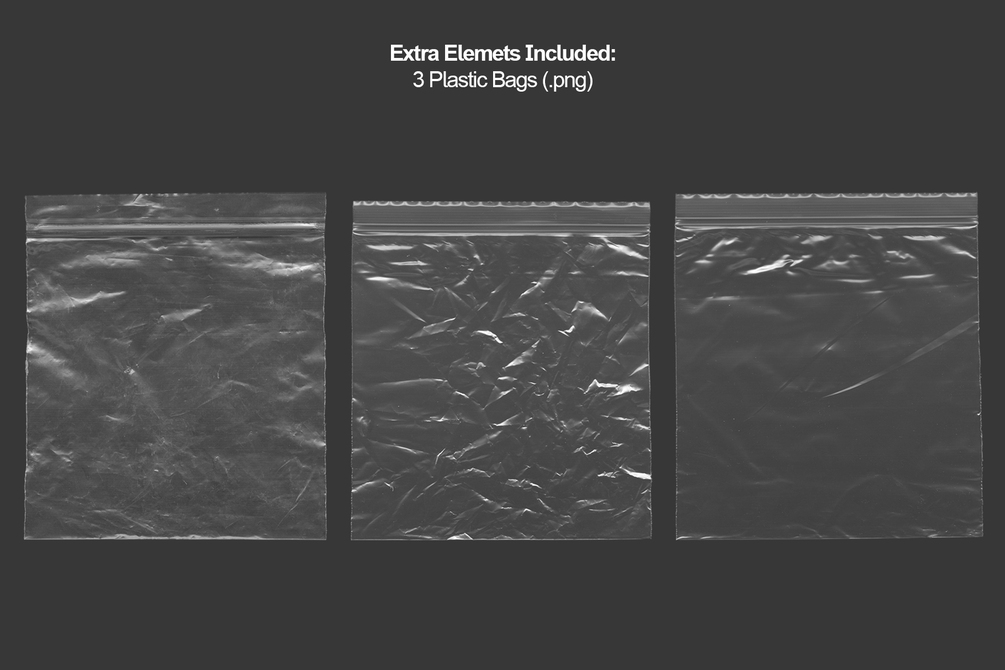 - Main file zip include fully layered 6 PSD file (with 6 ready scenes); 6 ready made Templeates (PSD file fully layered and editable); 3 Plastic bags (.png); 3 Stickers (PSD file fully layered and editable)